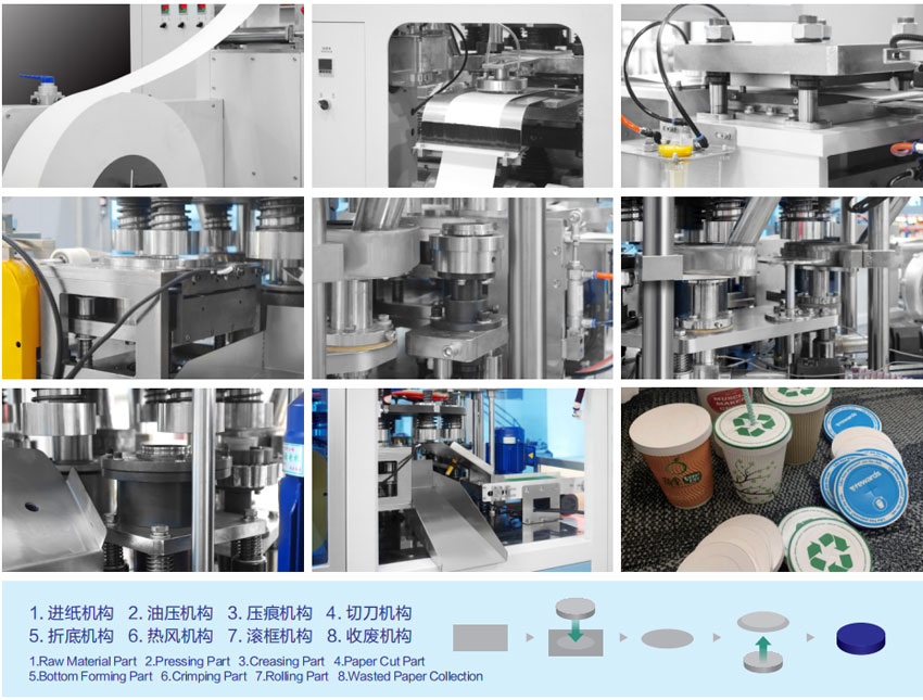 JGZ-18型全自动单张纸盖机是生产纸汤碗盖、咖啡杯盖、纸容器盖的专业成型设备。该杯盖采用的是单张纸成型技术,能更节约成本。该杯盖的特点是单张纸侧面折叠成型,轻轻盖在纸杯上的同时可锁住少量水分的渗出。此机型配备1位工作人员便可操作,性能稳定,效率高。在引进先进技术的同时,节约原材料,能耗低,占地少,我司欢迎客户的各种规格纸盖定制。